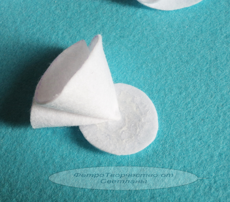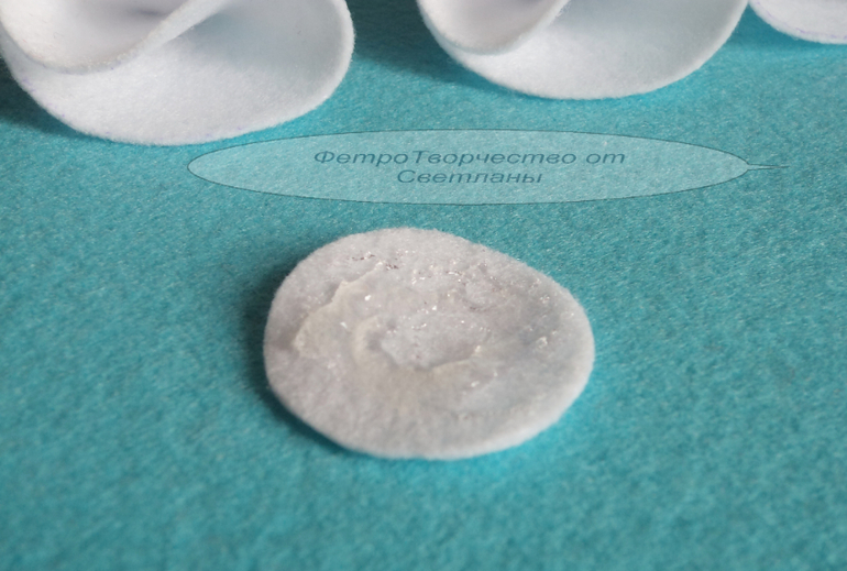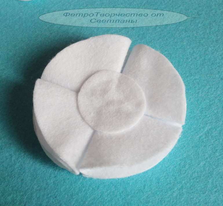 7. наносим обильно клей на маленький круг и накладываем 4 наши заготовки