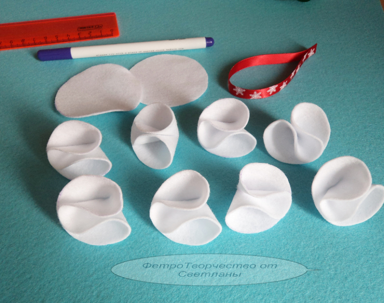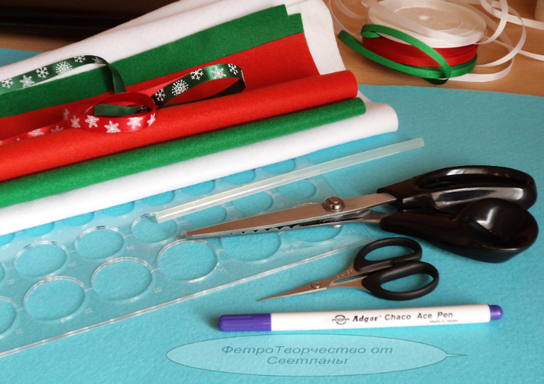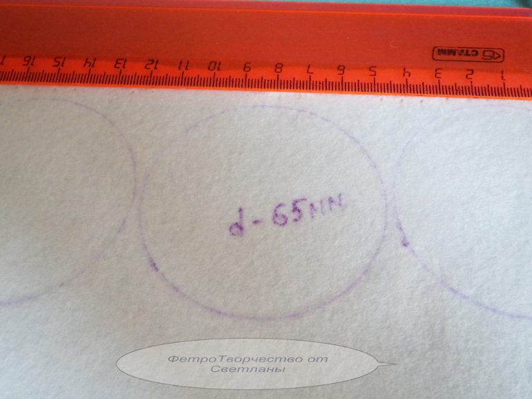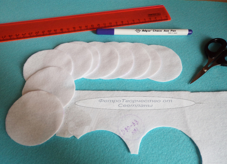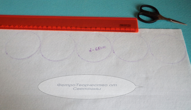 1. Рисуем( переводим) кружочки на фетре .Я для этого применила самоисчезающий маркер , линии от него исчезнут сами через несколько часов или их можно удалить слегка влажной салфеткой.