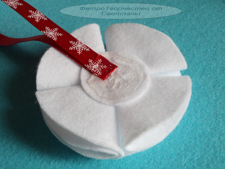8. Переворачиваем и снова наносим обильно клей + нужно приклеить вдвое сложенную тесьму