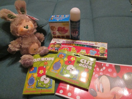 для Сони нужности-карандаши,альбом и пр. Милый плюшевый зайка!
