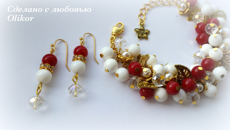 Бижутерия для слингомам. Слингобусы. Грызунки.Легкий и романтичный комплект из белого и красного агата со сверкающими бусинами с огранкой и фурнитурой под золото. Смотрю на него и настроение сразу поднимается, хочется и весны, и лета, и мягкий белый свитер - море ассоциаций и воспоминаний в голове.