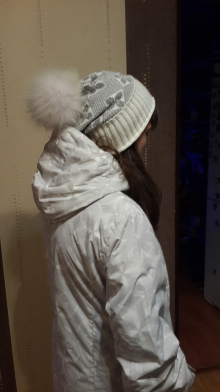У старшей дочери в институте физкультура всю зиму будет на улице. Условие преподавателя обязательное наличие шапки на голове для допуска к занятию. А ребенок мой шапок вообще не носит, только капюшоны. Методом проб и ошибок определили что модель будет со спущенным затылком. Пряжа семеновская полушерсть Лидия (люблю я ее). Вот результат. Примеряет младшая именно с той курткой под которую вязала.