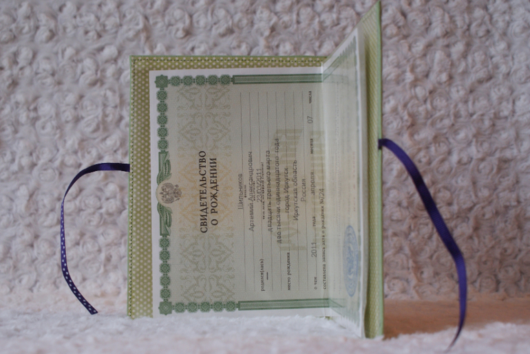 Формат как всегда А5 - очень удобно брать с собой (в аэропорт, поликлинику ну и еще куда). Само свидетельство хранится в прозрачном файле, под ним есть еще дополнительный кармашек для для других бумажных нужностей - при желании туда можно и загранпаспорт положить (получается целый холдер для документов детских).
