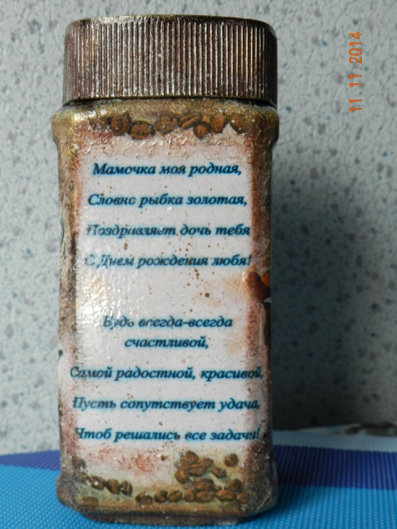 Дарья в Рукоделие 11 лет Баночка кофе и вазы. Декупаж Посмотрите еще 20 записей на эту тему Отменить Ответить Женя Даша, ну какая же ты умничка!!!!!!! Обожаю твои творческие посты смотреть и восхищаюсь-восхищаюсь!!!!! 12.11.2014 Ответить Дарья Спасибо, Женя!))) Очень приятно) 13.11.2014 Ответить Лена Красота, а распечатку поздравления сами делали? На салфетке? 12.11.2014 Ответить Дарья Спасибо!) Распечатку делала на тонкой фотобумаге, потом еще истончала. 12.11.2014 Ответить Павлова Анастасия здорово вы придумли с кофе 11.11.2014 Ответить Дарья спасибо! 12.11.2014 Ответить Шкатулка Декапе "Флорариум" Новогодний комплектик Чаты Беременных Выберите чат: Январята-2026 Февралята-2026 Мартята-2026 Апрелята-2026 Майчата-2026 Июнята-2026 Июлята-2026 Августята-2026