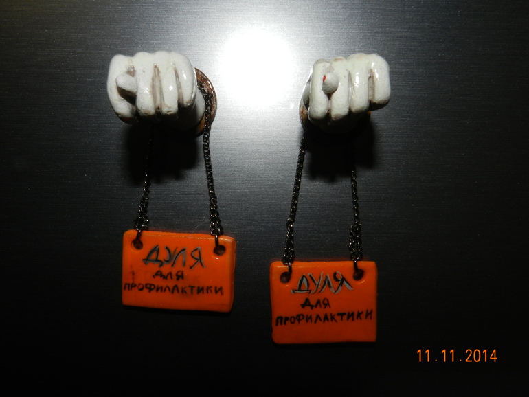 Немного предъистории. Лепила я тут недавно отару сувениров на Новый Год. Предполагались они в качестве подарочков и дополнений к подарочкам. Но пришли в гости две не вмеру хапужистые подруги и( как мимо пройти) схватили два экземпляра из сушившейся отары. Сказали, что авансом на Новый Год. Потом сказали, что, мол, как же так, в праздник они без подарка? Подаришь ведь хоть что-нибудь, говорят. " Фиг вам!"- сказала я. " Мы и на фиг согласны!"-ответили они. И вот что получилось)
