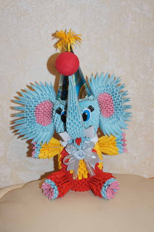 Мастер-класс здесь Спасибо за него Галине Тиховой!!! Делала все так-же, исключение лишь в ножках не по 9 модулей, а по 10 и на один ряд больше (подлиннее штанишки и рукава) и вместо цилиндра сделала колпачок(уже не успевали по времени), да и шарик приклеили свой, не из модулей. Это подарок нашему детскому садику- на 25-летие!!!