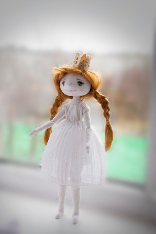 Вот такую куколку сшила на заказ для маленькой,прелестной девочки из прекрасной страны Чехии.У куколки вся одежка съемная-(колготочки,панталончики,сорочка,подъбник,юбка,платье,штаны,валеночки,пальтишко,шапулька).Валеночки наваляла сама,первый раз не зная как методом тыка на пальцах тыкала иголкой и вот такие чудесные валенки получились=))Корону делала методом золочения,волосюшки расплетаются и можно хвостики делать и т.д..Ну вот она нарядная .....