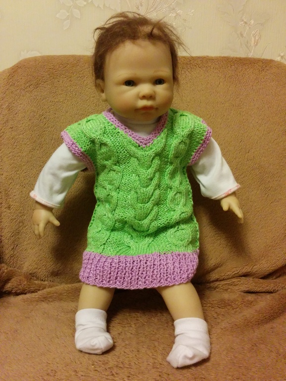 Нарядили мы с сыном нашу лялю)) я вязала, сын помогал)) то нитки запутает, то спицы достанет))) шалуниша. А наряжали уже вместе с большим удовольствием))