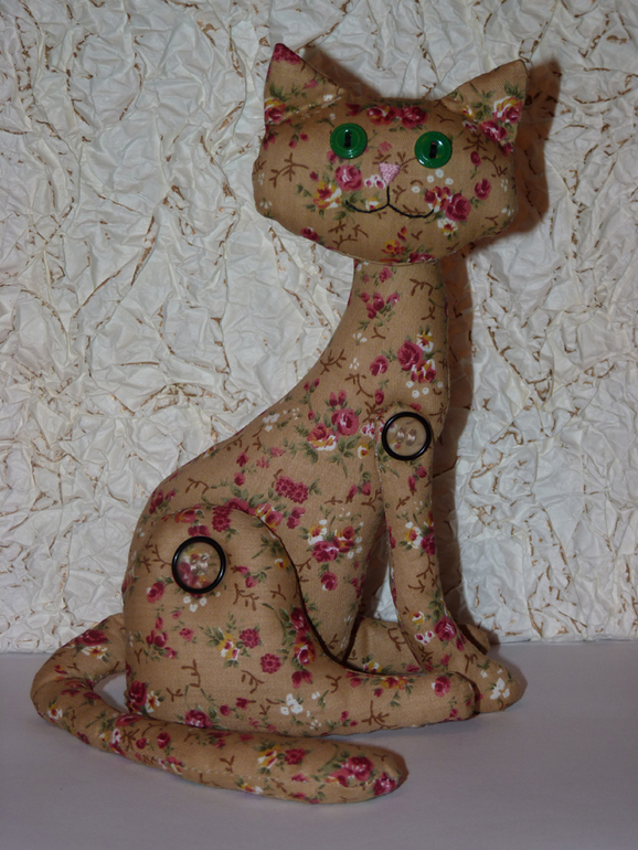 Классная кошечка!Вы не могли бы поделиться выкройкой? Если это это не секрет, конечно :0)Моя свекровь очень любит кошек и такая декоративная очень пришлась бы ей по душе, я уверена...