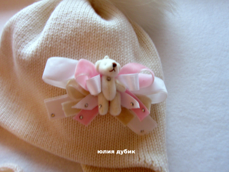 Приветик, ну ты и трудоголик, узнаю общие черты :)Юль, по делу — аппликация съемная? Как крепила мишку к бантам? Мишка — это брелок?