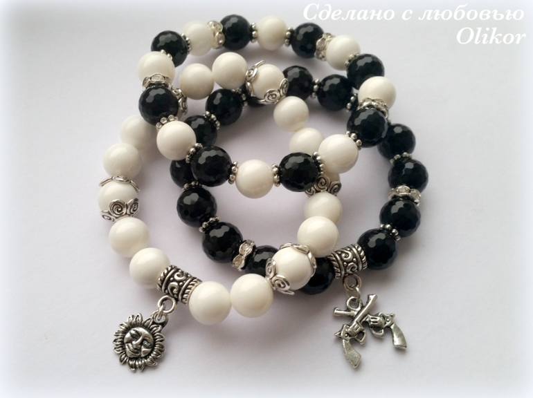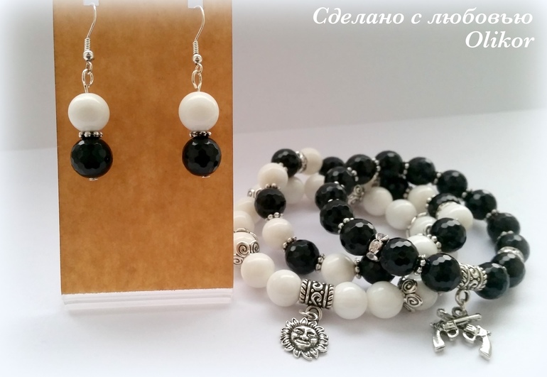 Бижутерия для слингомам. Слингобусы. Грызунки.Так мы с его хозяйкой назвали этот комплект=) Белый и черный агат - прекрасное сочетание, а огранка черных бусин придает дополнительный блеск и привлекает внимание.