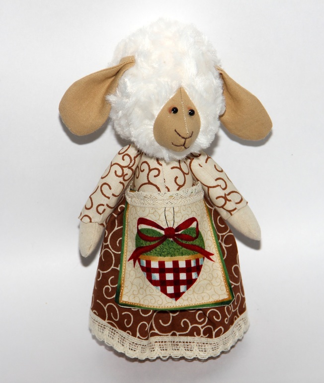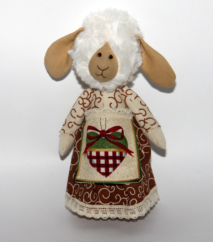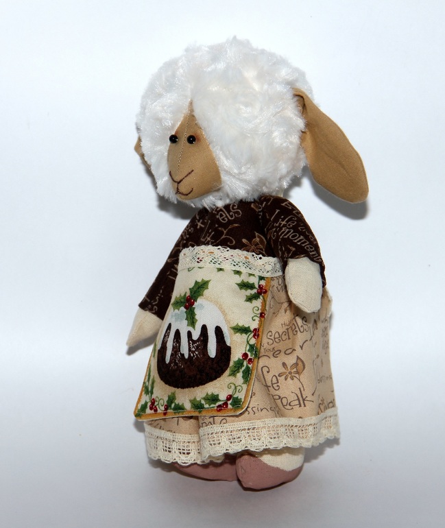 овечек как на картинке.Одета в платье с фартучком, на фартучке