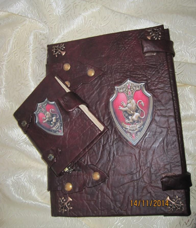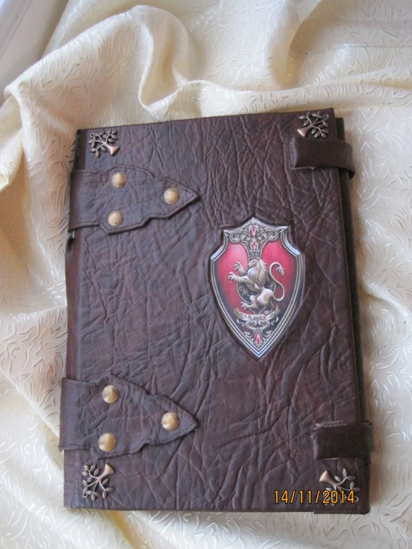 Изделия из кожиПапка для документов в стиле "Игры престолов", дом Ланнистеров. Материал, правда, не кожа, а кожзам. На липучках. На декоративных петлях приклеены заглушки для мебели с отрезанными "ножками" и покрашенные акриловыми красками.