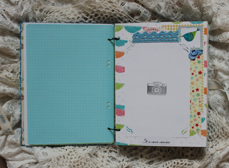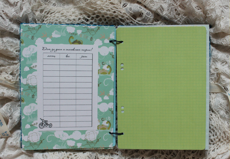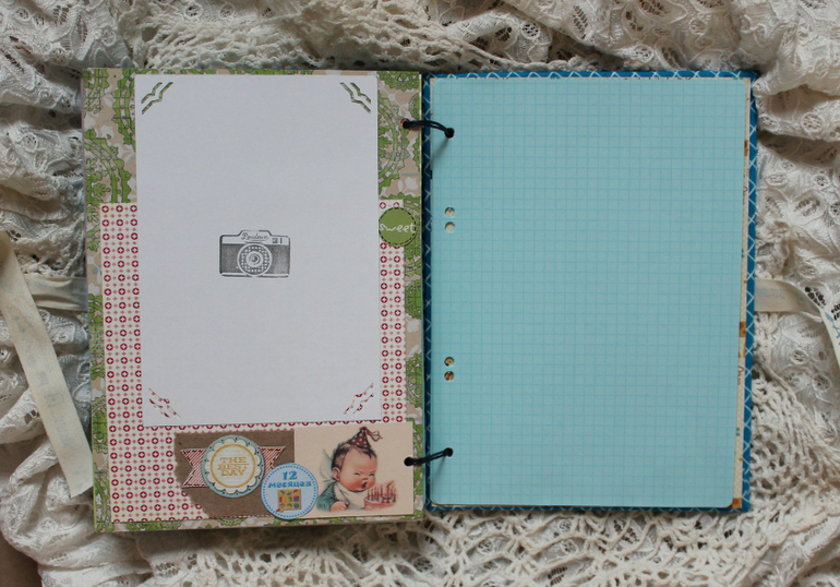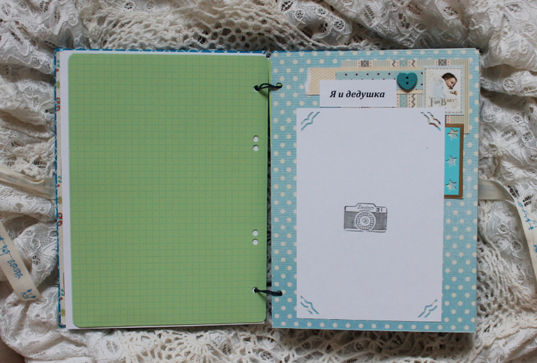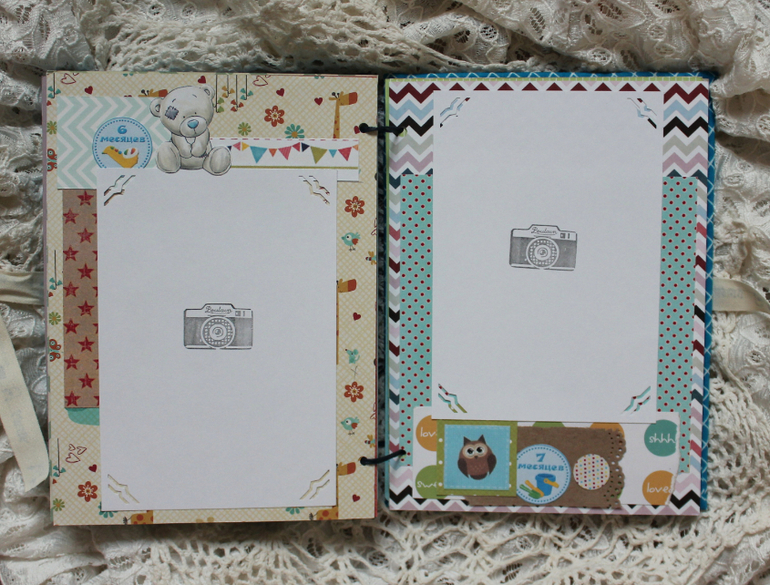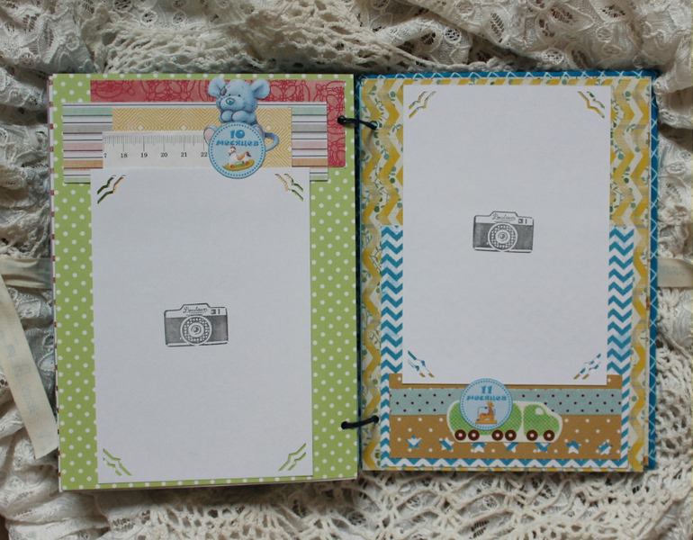 Сегодня покажу большой блокното-альбом для записей о малыше по имени Георгий -он же Гоша,он же Жорик ,он же Джордж -как сказала его мама:)) . Вместил много разделителей с карточками достижений малыша,конвертов,местами для отпечатки маленьких ручек/ножек :).Также есть 6 разделителей для фотографий первого года малыша -по одной на каждую сторону. Ну и конечно есть просто листы для записей всяких интересностей о первом годике Гошеньки. Блокнотик ооочень пухлый и тяжеленький-приятно держать в руках !:) Смотрим....