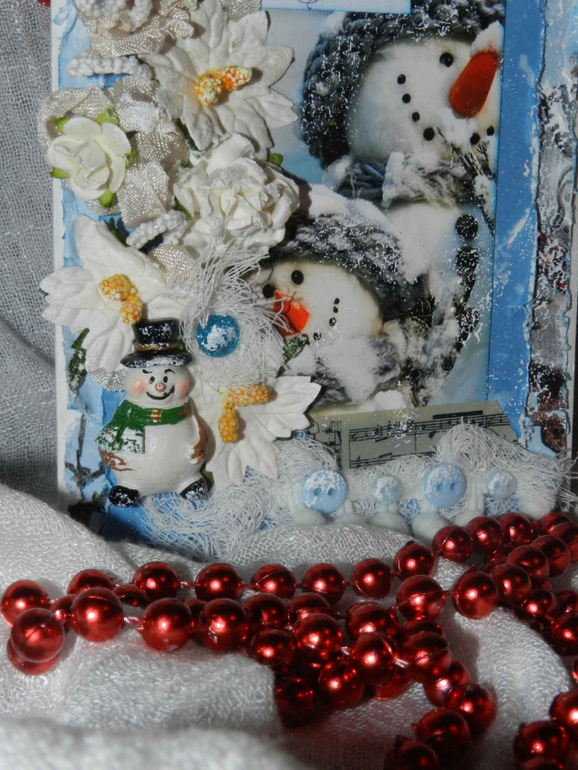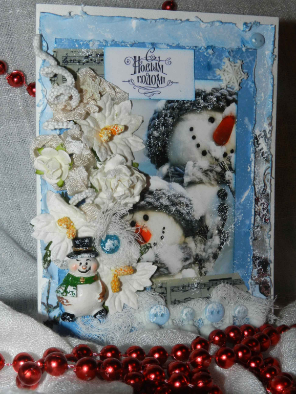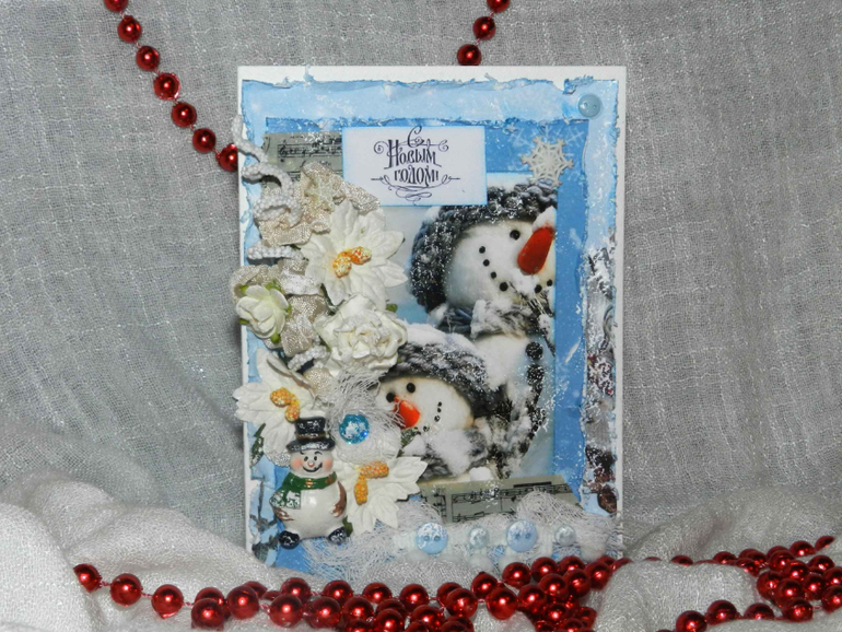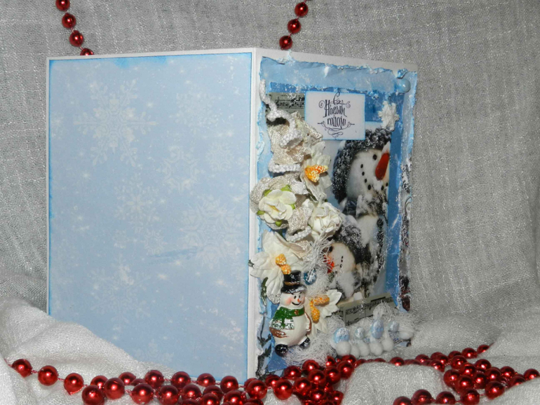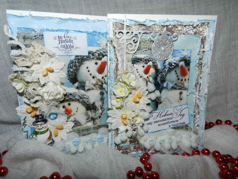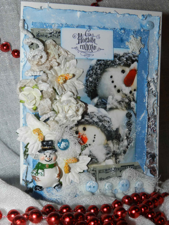 СкрапбукингДобрый день!!!На улице пасмурно-ветренно и холодно. Поэтому потихоньку начинаю готовиться к волшебному празднику Новый год!!! Создавая тем самым атмосферу праздника! Сегодня покажу открыточки со снеговичками.