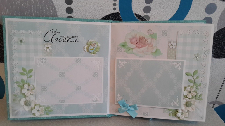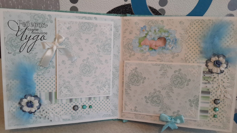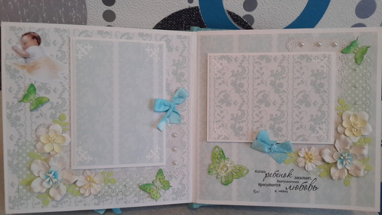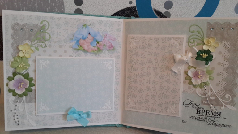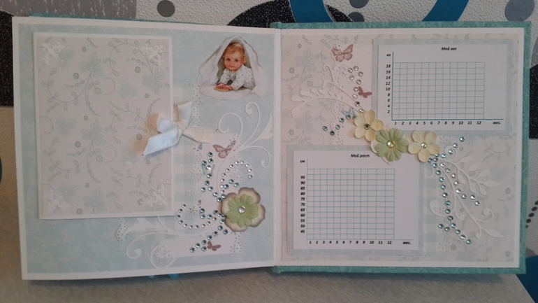 СкрапбукингПриветик девчата! Хочу показать выполненный заказик фотоальбом и обложка для свидетельства о рождении. Фотоальбом форматом 20*20 см. , мягкая обложка, 7 разворотов, рассчитан на 35 фотографий. Обложка для свидетельства о рождении форматом А4 мягкая обложка и есть кормушек для медицинского полиса.