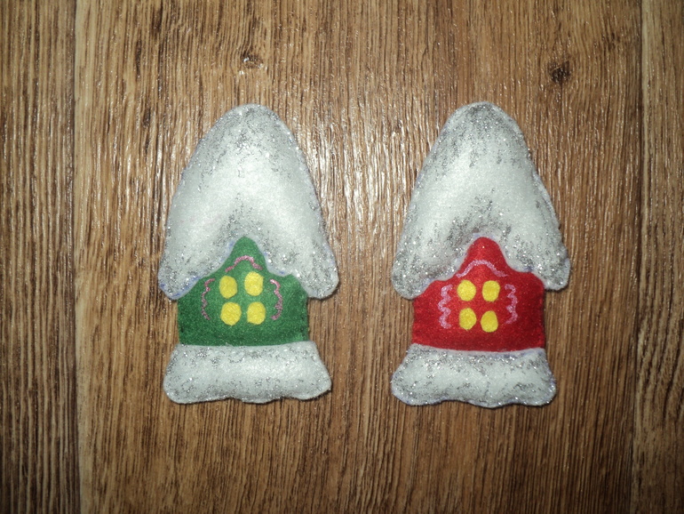 На фото не видно, но домики на свету переливаются и сверкают))) нашла новогоднюю подводку для глаз, которая высохла и очень крепко держится на фетре, не осыпаясь)))