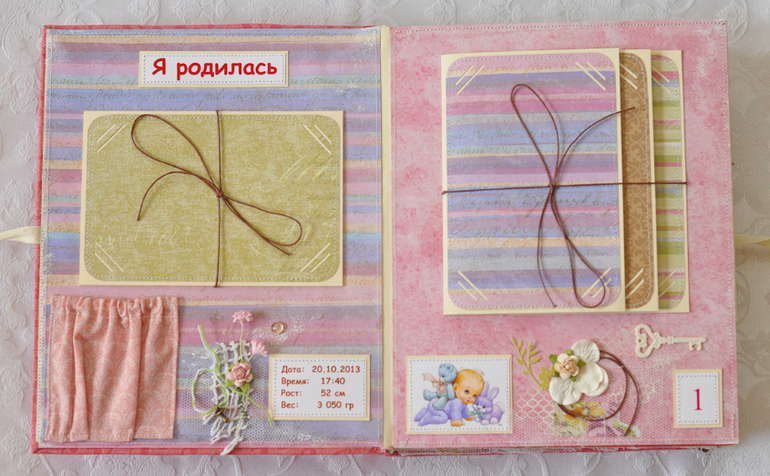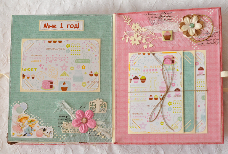 Формата 20х25 см, вмещает более 60 фото, всего в альбоме 7 разворотов.