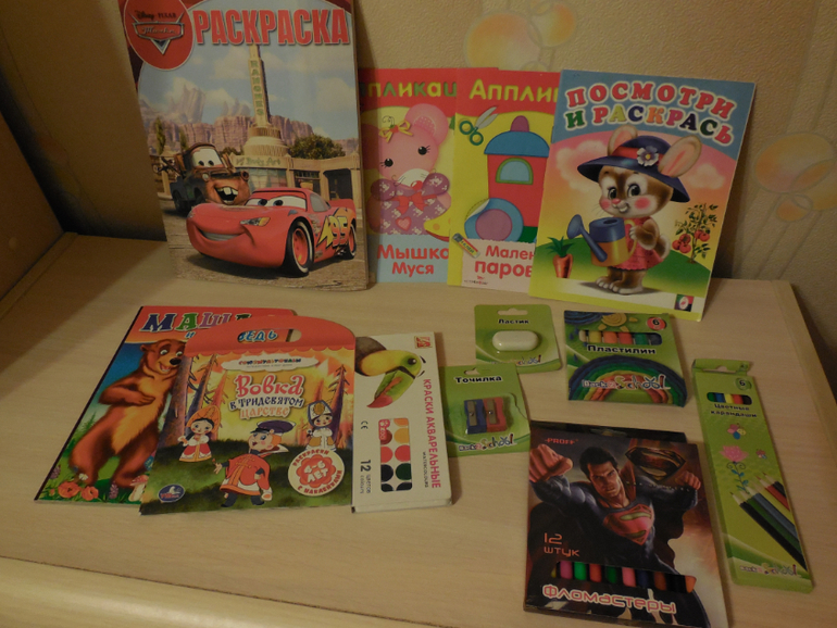 много разных книжек, раскрасок, аппликаций, канцелярии!