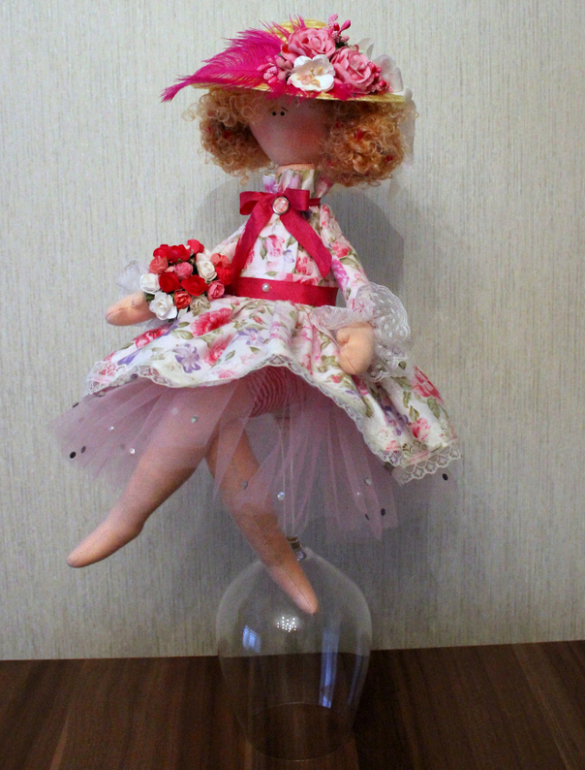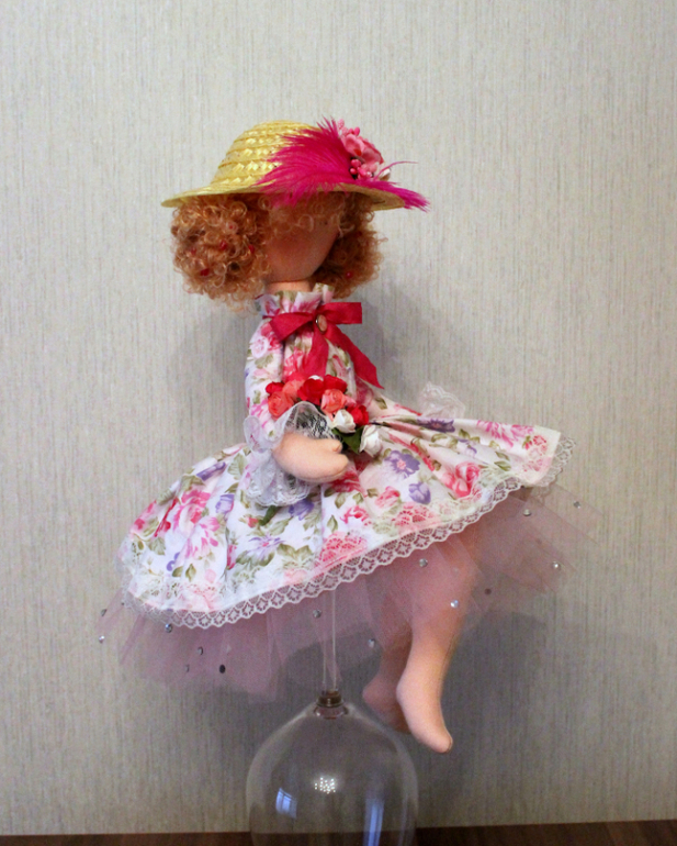 в первые шила куколку которая только сидит ) Было интересно. Сидит у меня Леси на боооольшом винном бокале