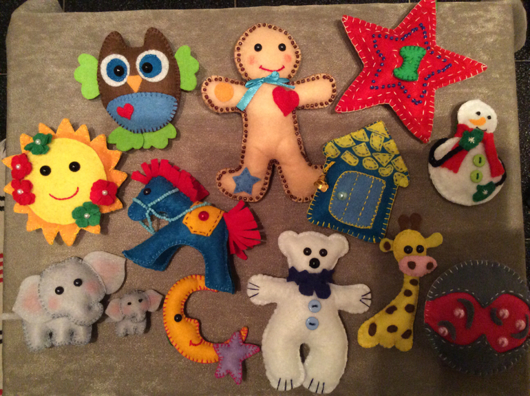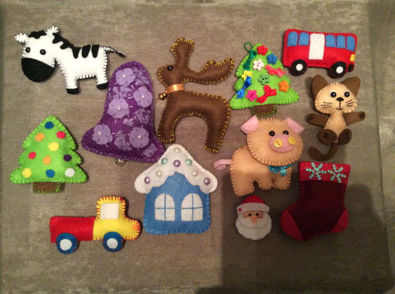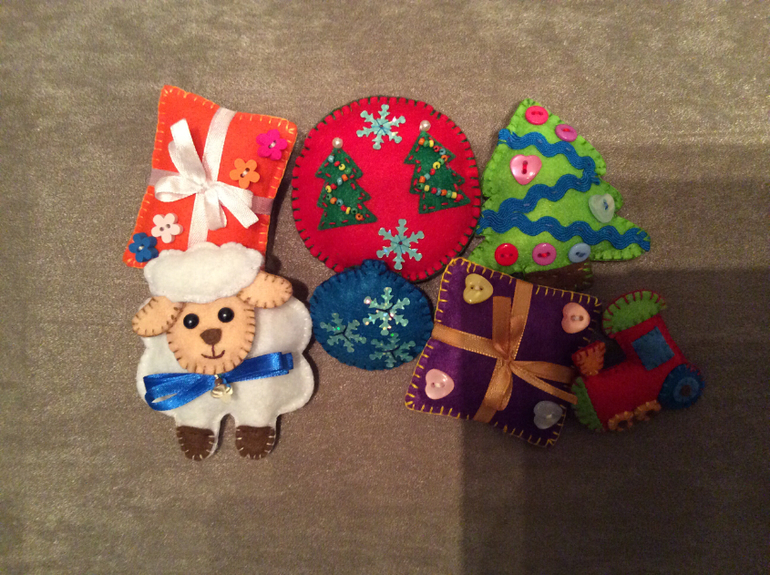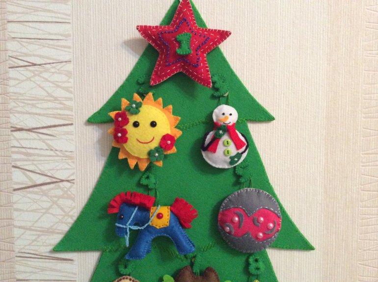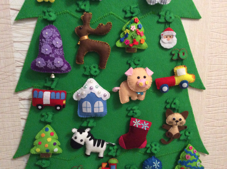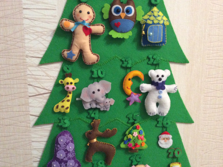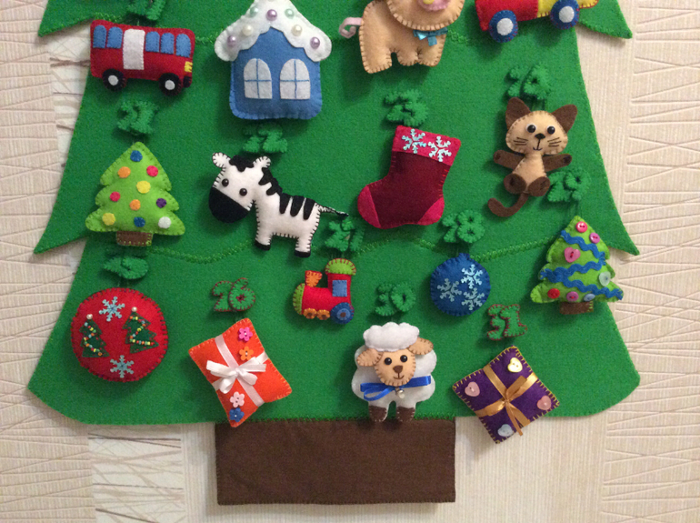 ФетрДоброго времени суток, девочки! Давно смотрю на ваши творения в этом сообществе, любуюсь. Вот наконец и я закончила свою первую работу ( не считая чехла для ножниц в первом классе и прихватки- курочки в третьем))) Шилась елочка для моего сына. Основная идея взята у рукодельницы с ББ Дарьи Мартьяновой (http://www.babyblog.ru/community/post/fiesta/1705685), за что ей огромное спасибо! Выкройки игрушек с просторов интернета. Кто узнает свои - спасибо вам большое! Есть несколько игрушек моего собственного сочинения)) Высота елки около 1 метра. Размер игрушек различный: 15 см, 10 см, 7, 5 см, самая маленькая ( слоненок) около 3- х см. Шила все вручную, хотя елку планировала сшить и обметать на машинке. Но, поработав с тремя деталями елочки, моя Аврора служить отказалась) Пришлось все распарывать и снова брать иголку в руки. Но дело не в этом) Работать с фетром мне очень понравилось. Результат оправдал мои ожидания)) Скорее бы 1- е декабря, чтобы начать подготовку к празднику! А теперь фото: