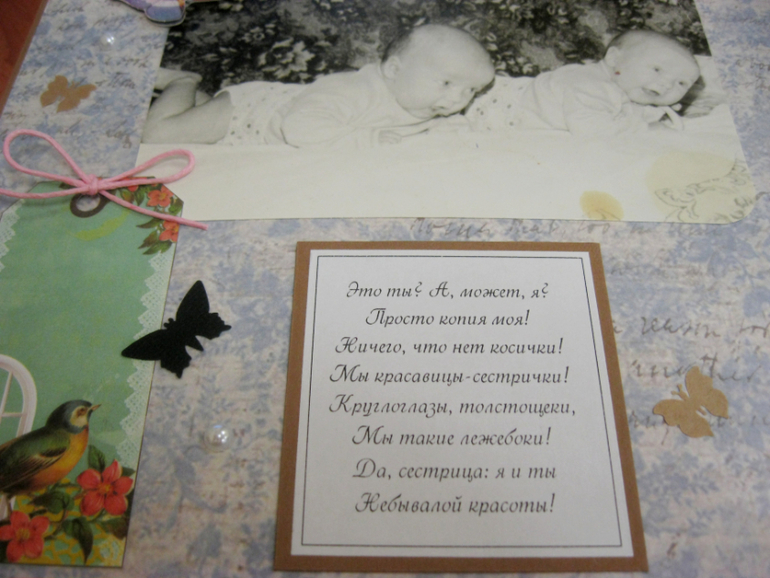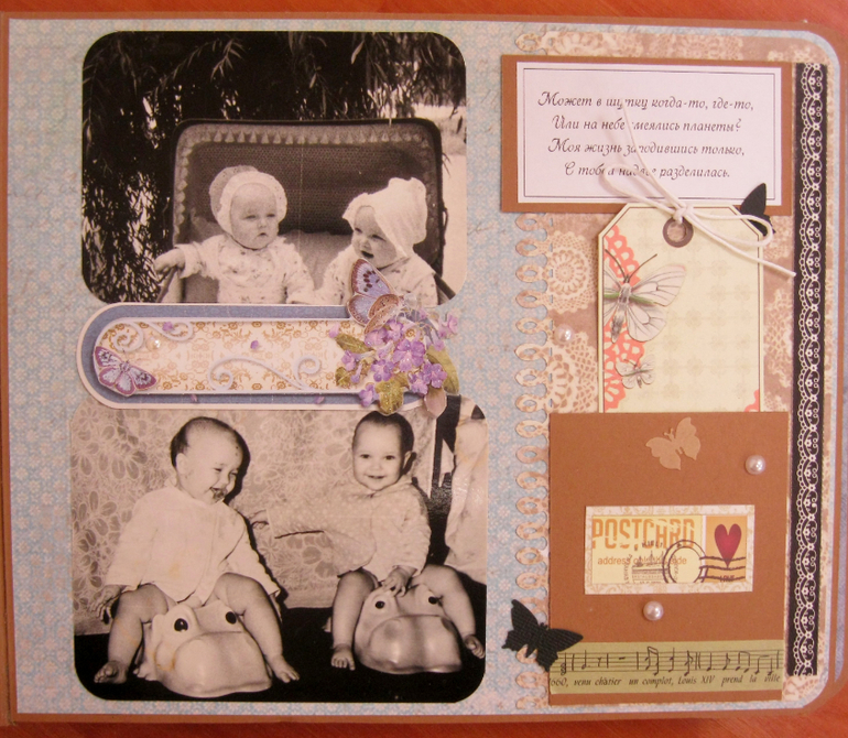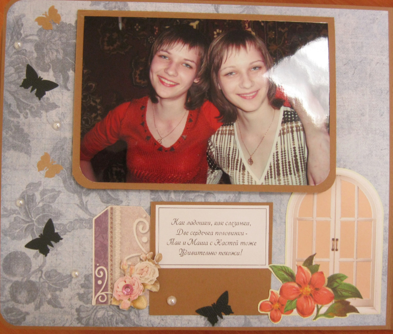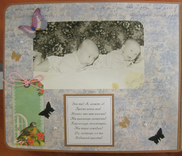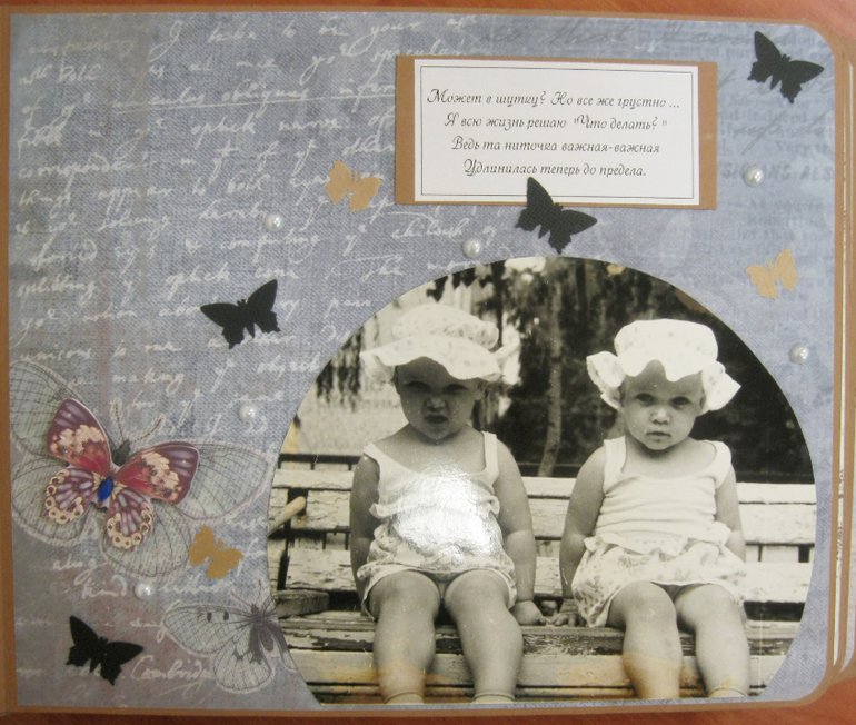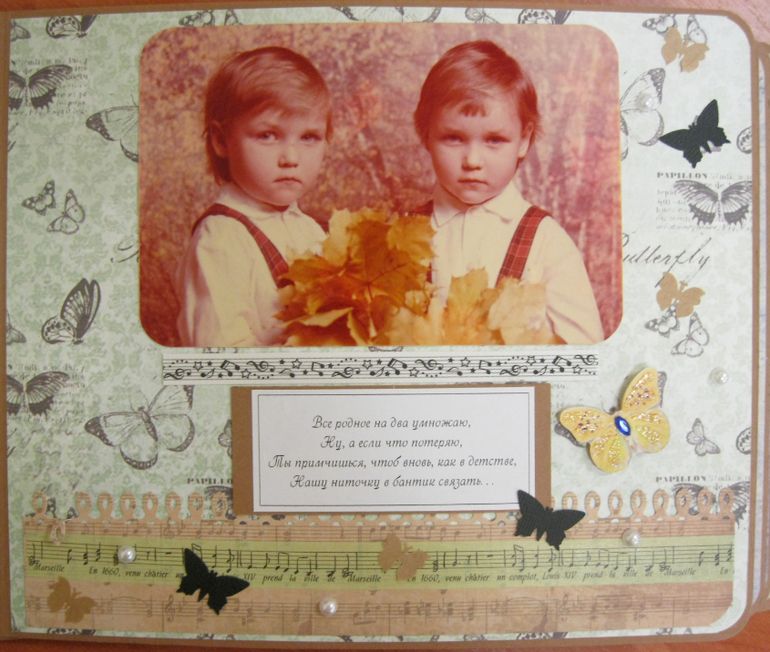 Классный альбомчик!Когда смотрела, как- бы вместе с ними проживала их взросление. Всё ясно и понятно. Отличный подарок! Но, я считаю, надо бы и второй такой сделать один в один. Верчонок, молодец- справилась с задачей на все 100%!Галина