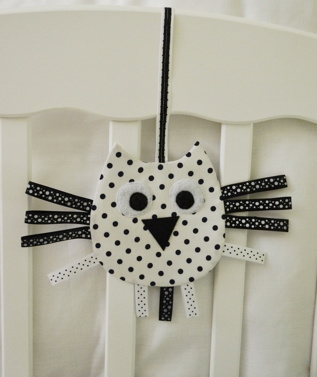 Много где встречала, что, так как у маленьких детишек зрение еще слабо развито и острота низка, им проще и интереснее смотреть на черно-белые фигуры, Где-то (уже не помню где) наткнулась вот на такого плана совушку и решила сделать ее