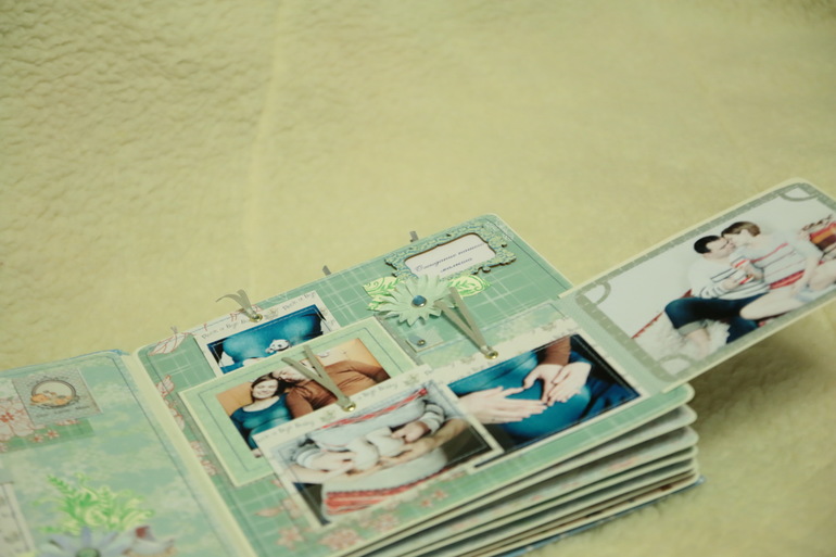 Альбом состоит из 8 разворотов в тканевой обложке, переплет по Виноградовой, т.к. одним из требований заказчицы было сразу внести фотографии 6,5 разворотов в альбом, поэтому всех разворотов не покажу, т.к. считаю это слишком личное.