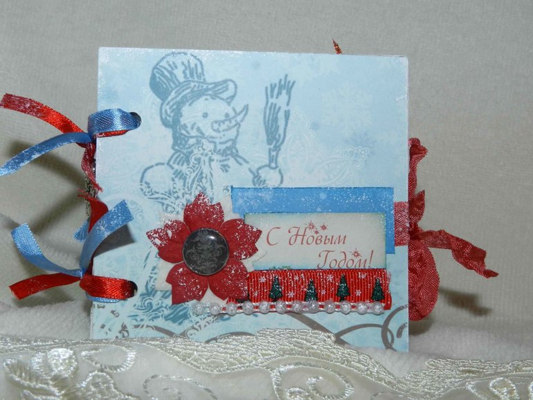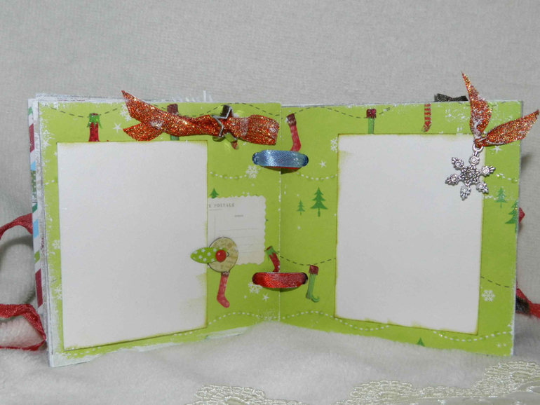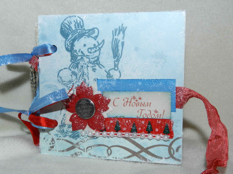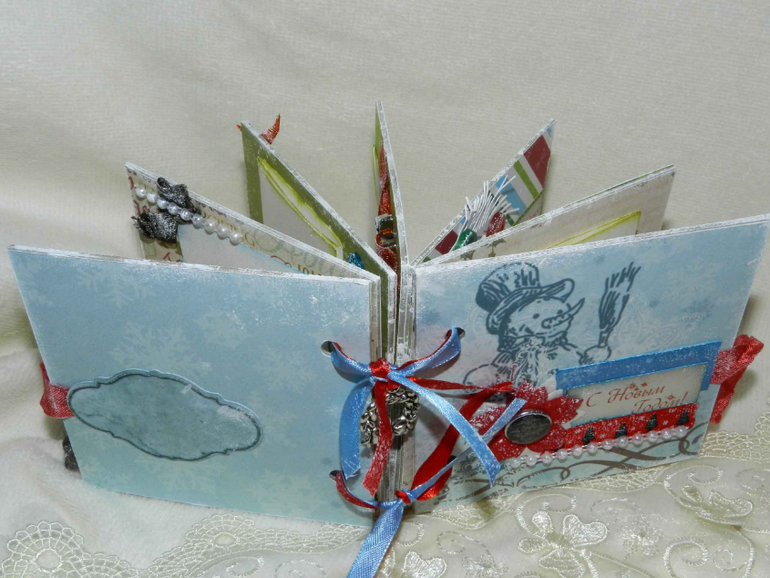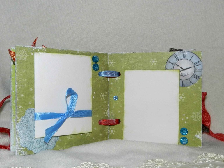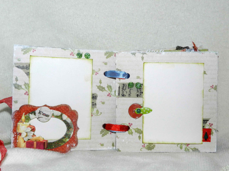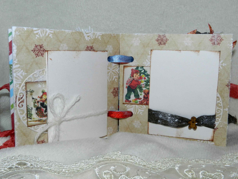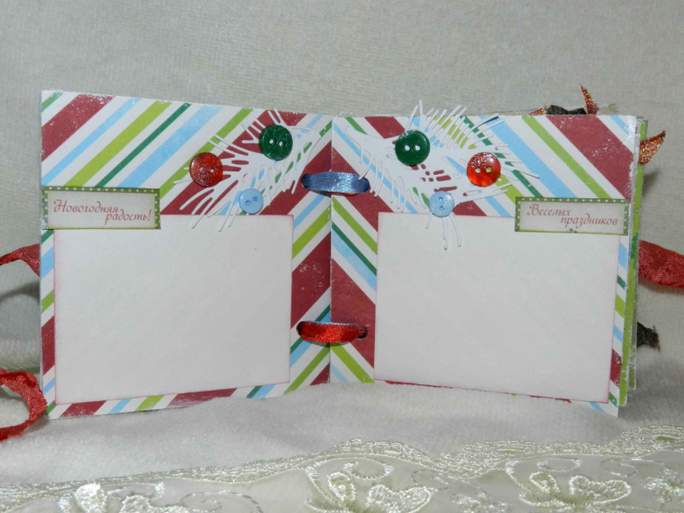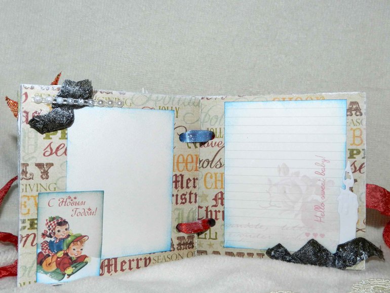 СкрапбукингДело было...в детский сон. Сделался новогодний малышок. Совсем малышок 10х10 см. Альбомчик на ленточках. Вмещает 23 фотки-малышки 6х8 см, а так же место для письма деду Морозу))))Ну или поздравления новогоднего! В такой альбом, думаю, можно вклеить фото одного праздника, или несколько новогодних фоток малыша...и подарить бабулям-дедулям))) Или оставить себе на память, места много не займет. Такой малыш