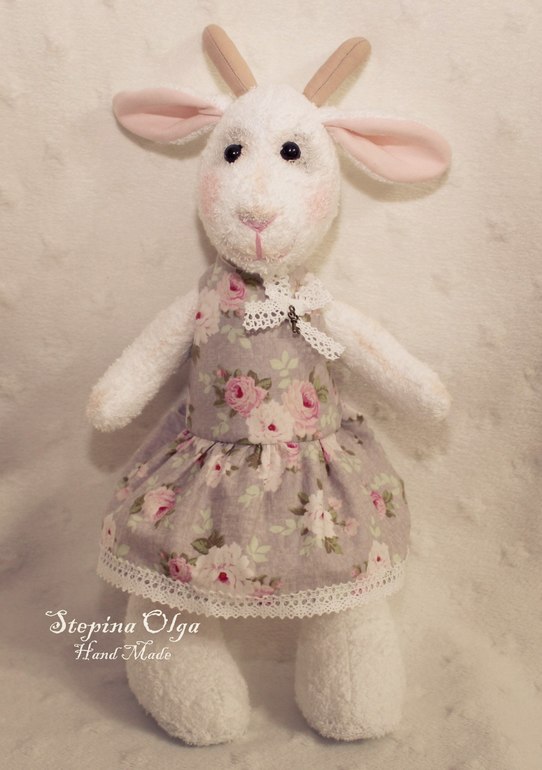 Это моя первая авторская работа. Проанализировав выкройки зайчиков, я решила создать своего зайчика, да да , я не ошиблась зайчика! подошел сынок ко мне и я спрашиваю Ваня кто это , он ответил меее, ну вот и действительно мееее))) обрезала ушки, добавила рожки и получилась козочка Мее)))