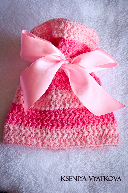 Снова проснулось желание вязать. Недавно увидела фотографию в интернете и решила связать что-то подобное. Узор выбрала другой, но цветовая гамма осталась. Шапочка прекрасно подойдет как для обычных, так и для тематических фотосессий, например "Детки-конфетки".