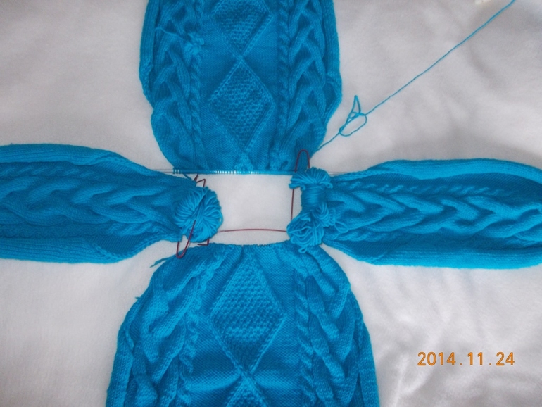 Далее я частично сшила детали, так удобней потом вязать горловину