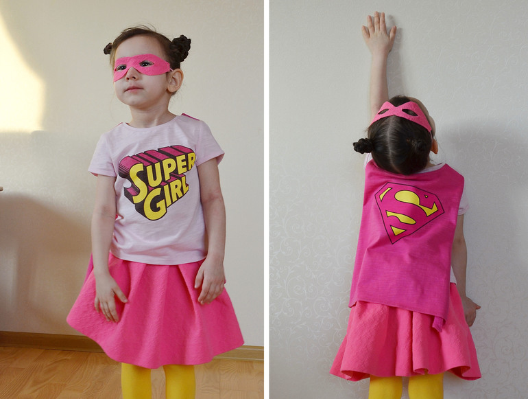 Шитье одежды, выкройки, ремонт одежды, шторы, швейные машины (уже приобретенные)Сегодня сшила юбку дочке. Играли в супер-героев, нарядились, а Полинка требует юбку и обязательно розовую. Пришлось шить из того, что нашла. Кримплен этот ещё моя бабуля покупала, все лежал, ждал своего часа))