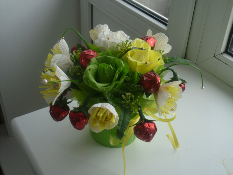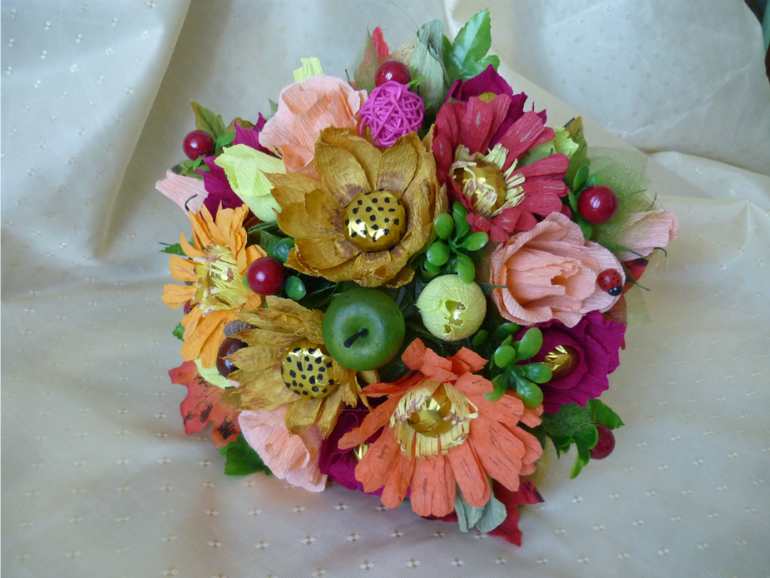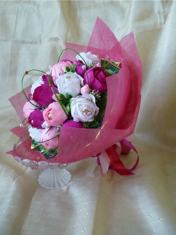 Привет, девочки! С момента увлечения этим ремеслом прошло полгода. затянуло так, что и не выберешься... и хочу вам показать мои первые "потуги" в этом деле. Всё делала в подарок родственникам. А и их оказалось, не так просто удивить. Всё было принято без всяких эмоции. Оцените, пожалуйста, мои букетики.