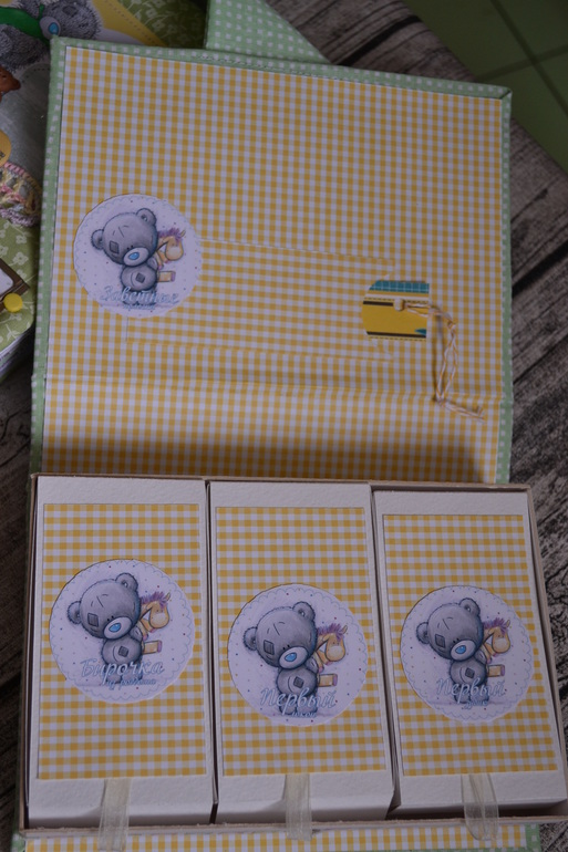 а у меня вот такой наборчик для будущей мамы- Блокнот для записей о малыше,папка для свидетельства о рождении и коробочка для первых сокровищ!!!!!!