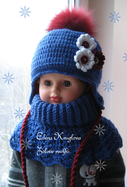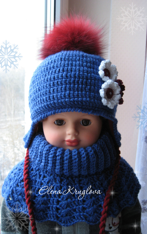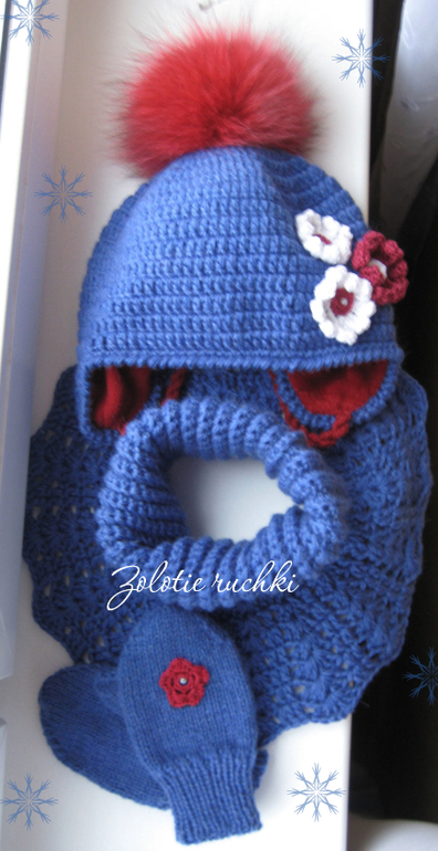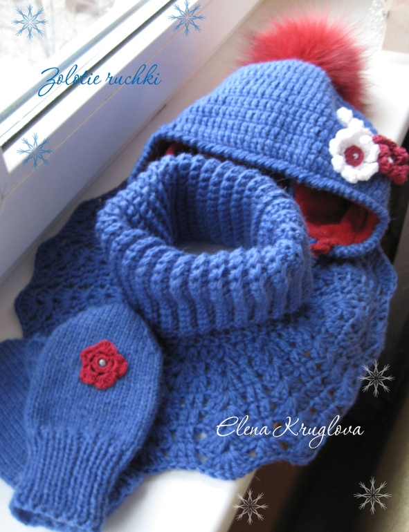 Еще один комплект для девочки. Зимний,теплый, из полушерстяной пряжи. В комплекте манишка,варежки и шапочка на флисе.Больше фото под катом...