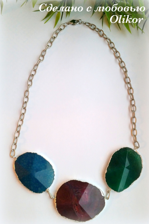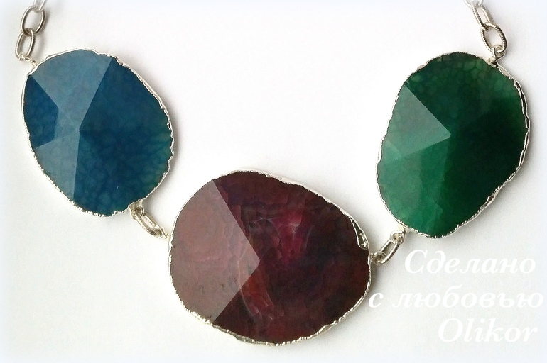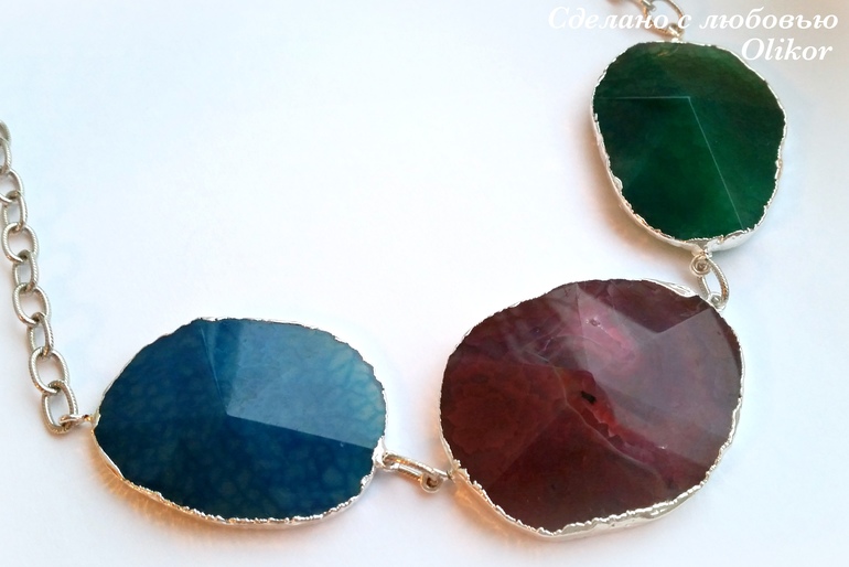 Колье из агатов, вариант в серебре