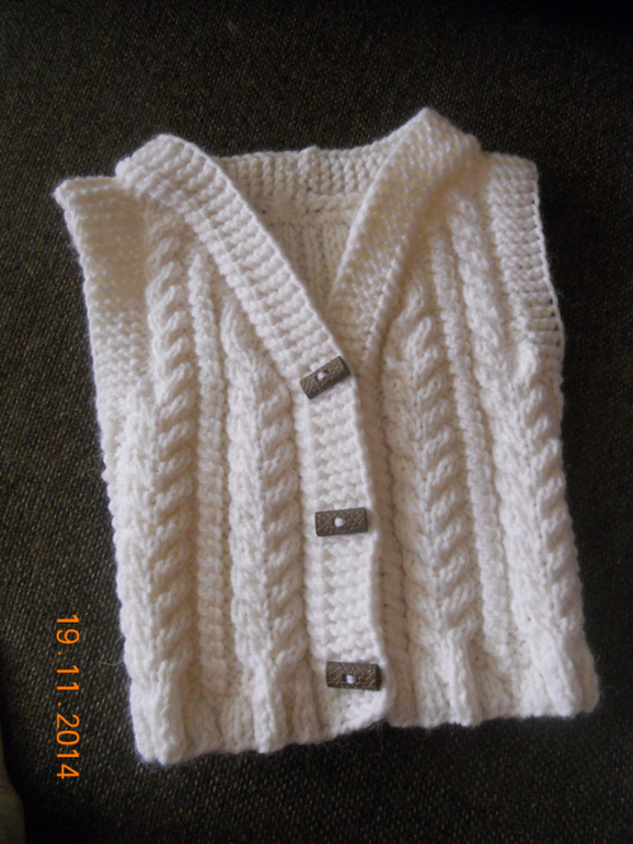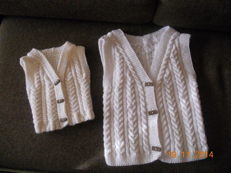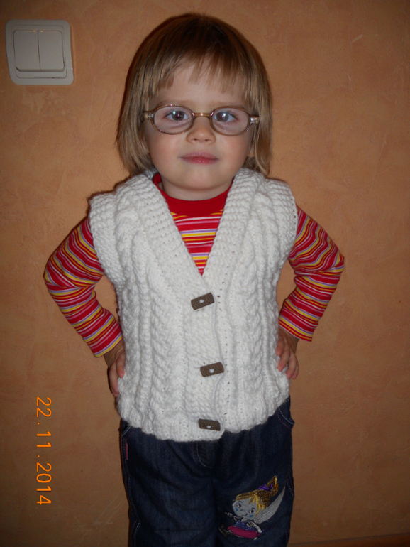 Кирюше идеально, у меня из других ниток жилетка,более стрейч, сильно растягивается и велика маленько