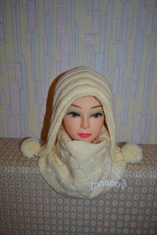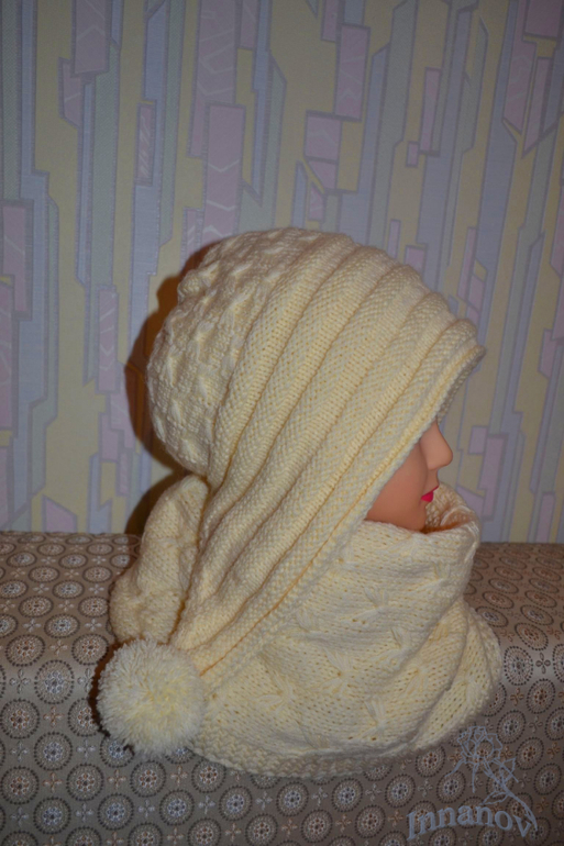 Ниточка Ализе Лана голд 800, ушло немного больше 4 мотков. Шапочка двойная, вязалась очень хорошей знакомой в подарок. Я бы лично вместо шарфа снуд сделала, но знакомая категорична в этом вопросе и носит только шарфы. Я уже ей вязала снуд, так и валяется где-то. Шапка получилась теплая, большая, как раз ей под ее шикарную косу. Если поймаю потом ее в этом комплекте, то фото вставлю. А то вяжу им, вяжу, а фото сделать ни как не получается