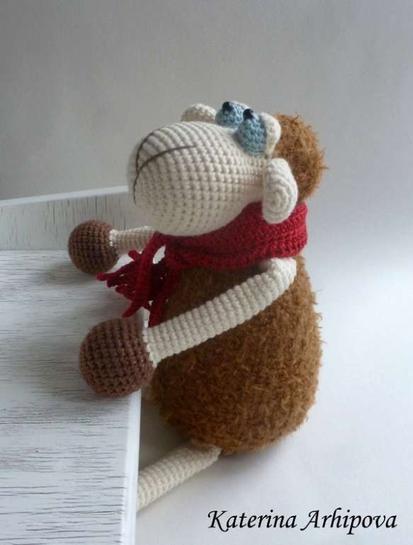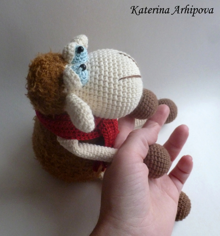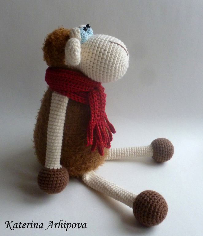 Далее бяша,тоже сегодня доделывала))) Сам прекрасно сидит,шарфик снимется.Рост 26см.