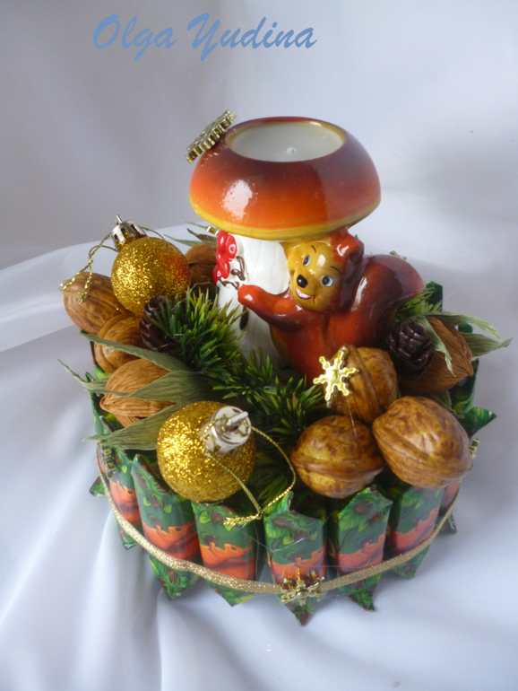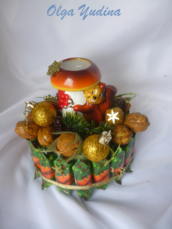 Мини тортик с конфетками "Белочка", со свечкой "Белочкой", с орешками: