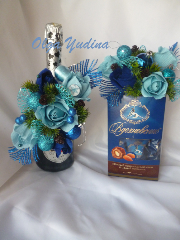 Украшения на шампанское и коробку конфет: