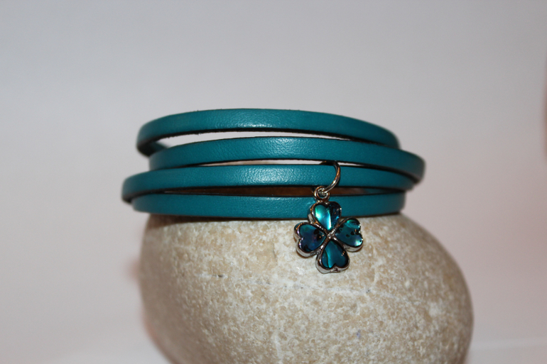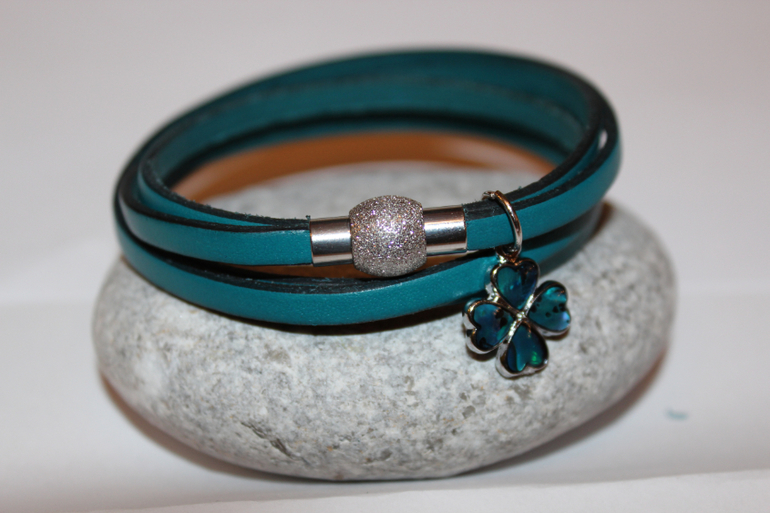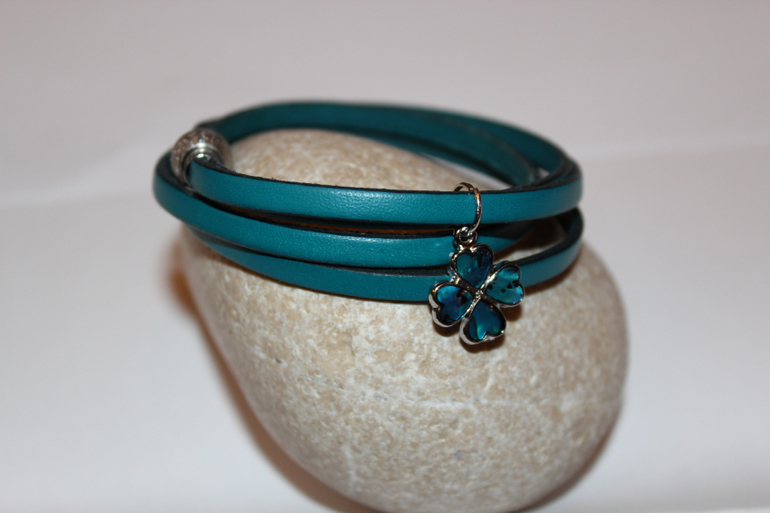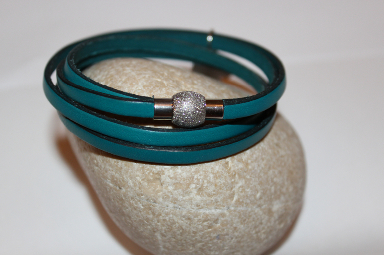 Нежный и немного гламурный браслетик из натуральной кожи темно-бирюзового цвета.