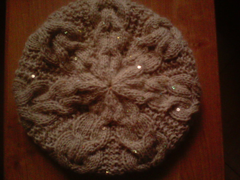 Получилась объмная, теплая , с легким пушком и мерцанием пайеток. Вязала в 2 нити, пряжа Ангора голд Pullu ( 4%пайетки, 9%шерсть, 9%мохер, 10%п/э, 68%акрил 50г/125м) светло- бежевый и "Москвичка" Троицкая (50% шерсть, 50% полиамид 50 г/200 м) цвета топленого молока.Ушло на шапочку 0,5 мотка Ализе и почти 1 моток "Москвички". Резинку шапки вязала в 2 нити только "Москвичкой". По цвету пряжа совпала на 100%.