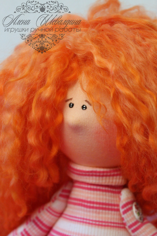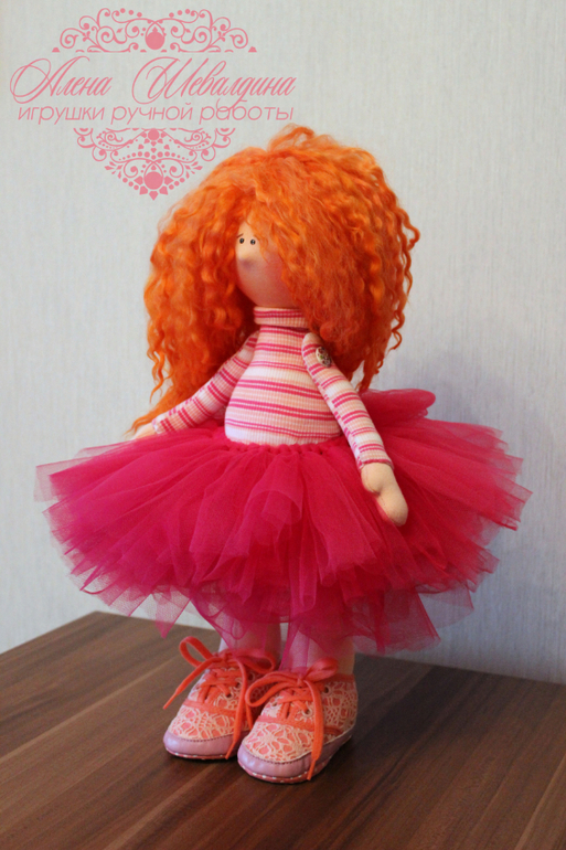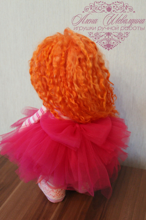 Покажу я вам сегодня куколку, сделанную в очень сжатые сроки. На исполнение было 3 дня. Так как основную работу, ни кто не отменял - 3 вечера после 21-00. Не чего особенно не просили, просто ярко рыжие волосы и пышная фатиновая юбка. Только юбку просили розовую, я на свой страх и риск изменила цвет на фуксию... Очень переживала когда отправляла фото заказчицы, а вдруг не оценит мой произвол! но!! все обошлось, все понравилось ) и это главное.