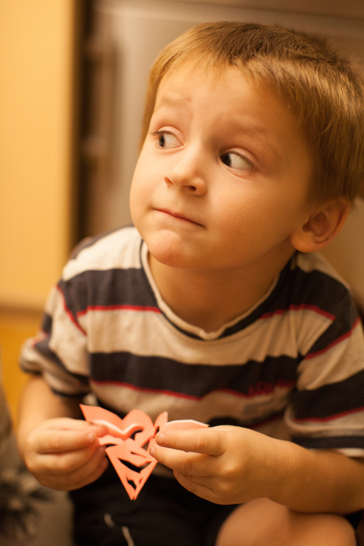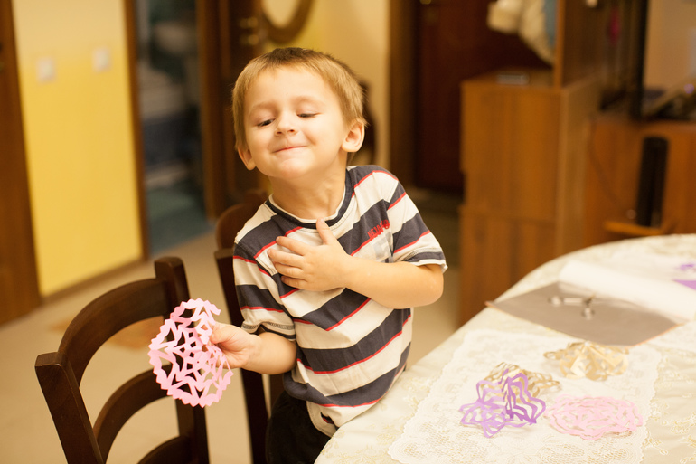 Идею мне подал Костик, когда сегодня на улице он радовался упавшей на варежку снежинке. А вырезали мы их вместе, причем не только из белой, но и из цветной бумаги. Пусть будут красивыми!