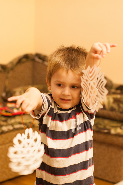 Ира украсила свою комнату, а мы с Костиком развесили снежинки у него в комнате. "Мама, у меня в комнате зима!" - обрадовался он)))
