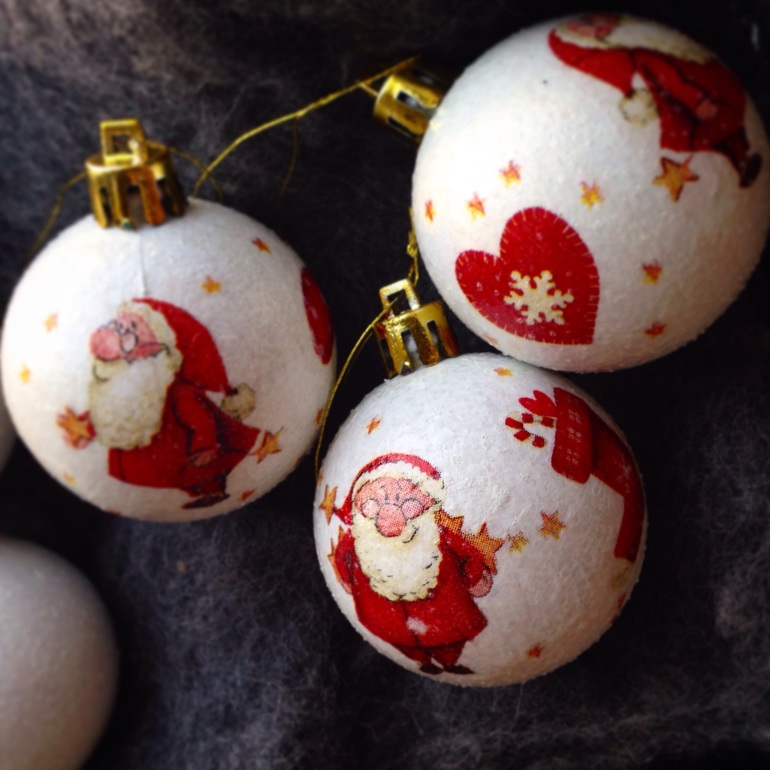 ДекупажОх, вот складываются иногда интересно обстоятельства. Лежали золотые пластиковые шарики, была краска белая, лаки для декупажа. Но не было мотива подходящего. Здесь