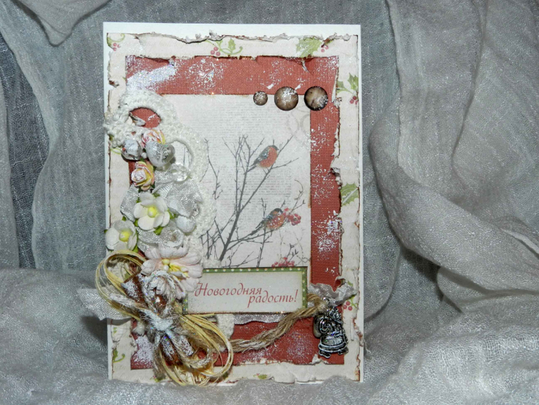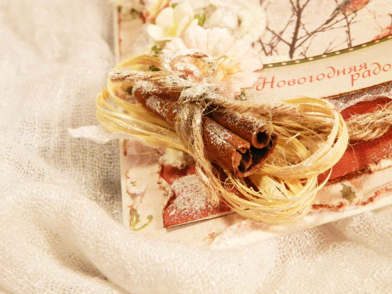 СкрапбукингДобрый вечер! С началом Зимы вас, девочки!!! У нас красота, снежок! Сегодня хочу показать очередную новогоднюю открыточку. Она пахнет корицей и снегом. Скоро-скоро яркий, сказочный праздник!!!Смотрите