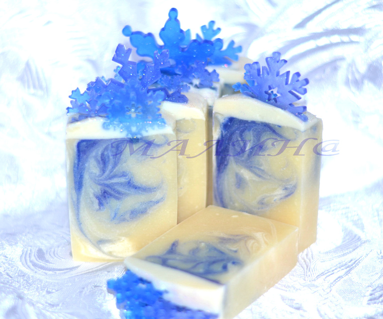 ооооо, класс!!!! красотища. еще и снежинки тоже мыльные...Я бы такое мыло поставила в ванной на полочку и никому мылиться не разрешала))))